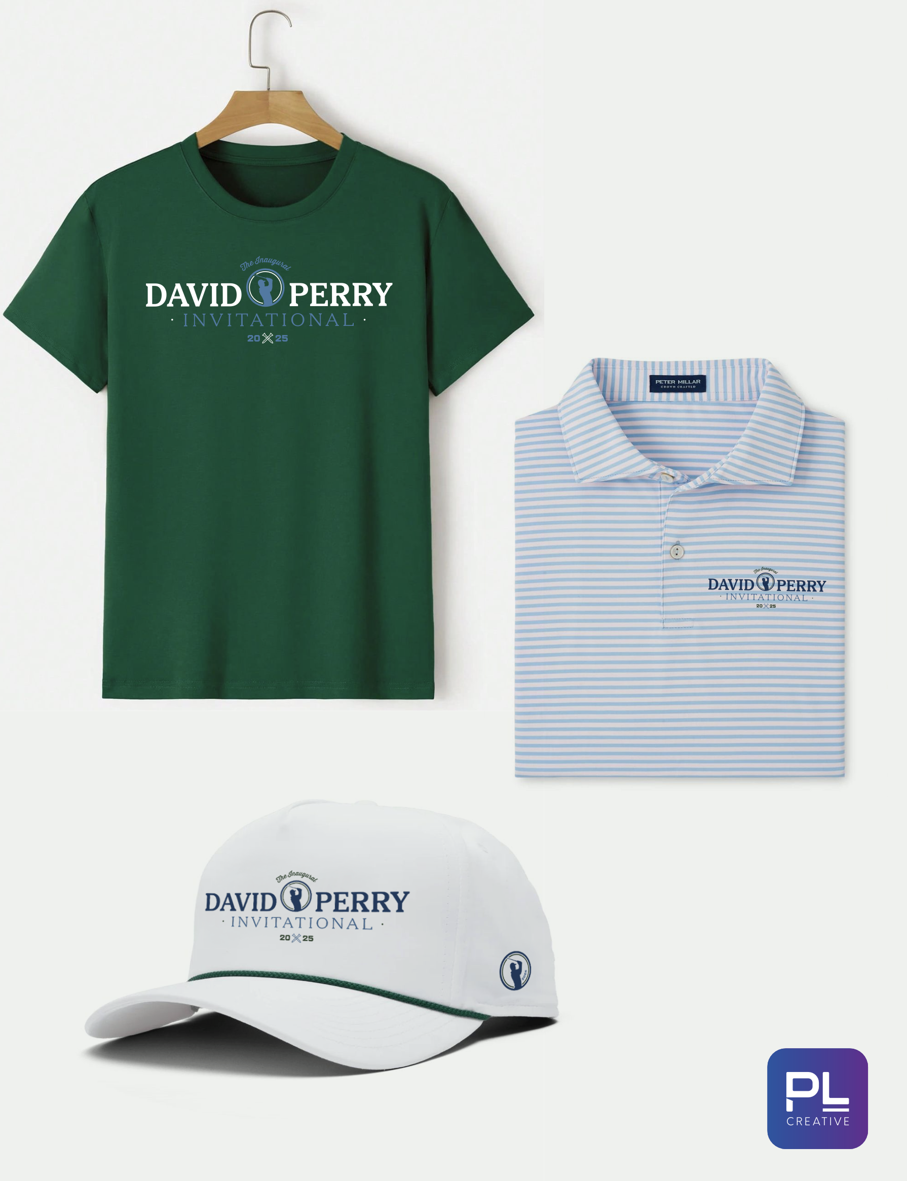 David Perry Invitational We had an opportunity to design branding and logos for one of our biggest passions: golf. We created a full branding suite with colors, logos & type.